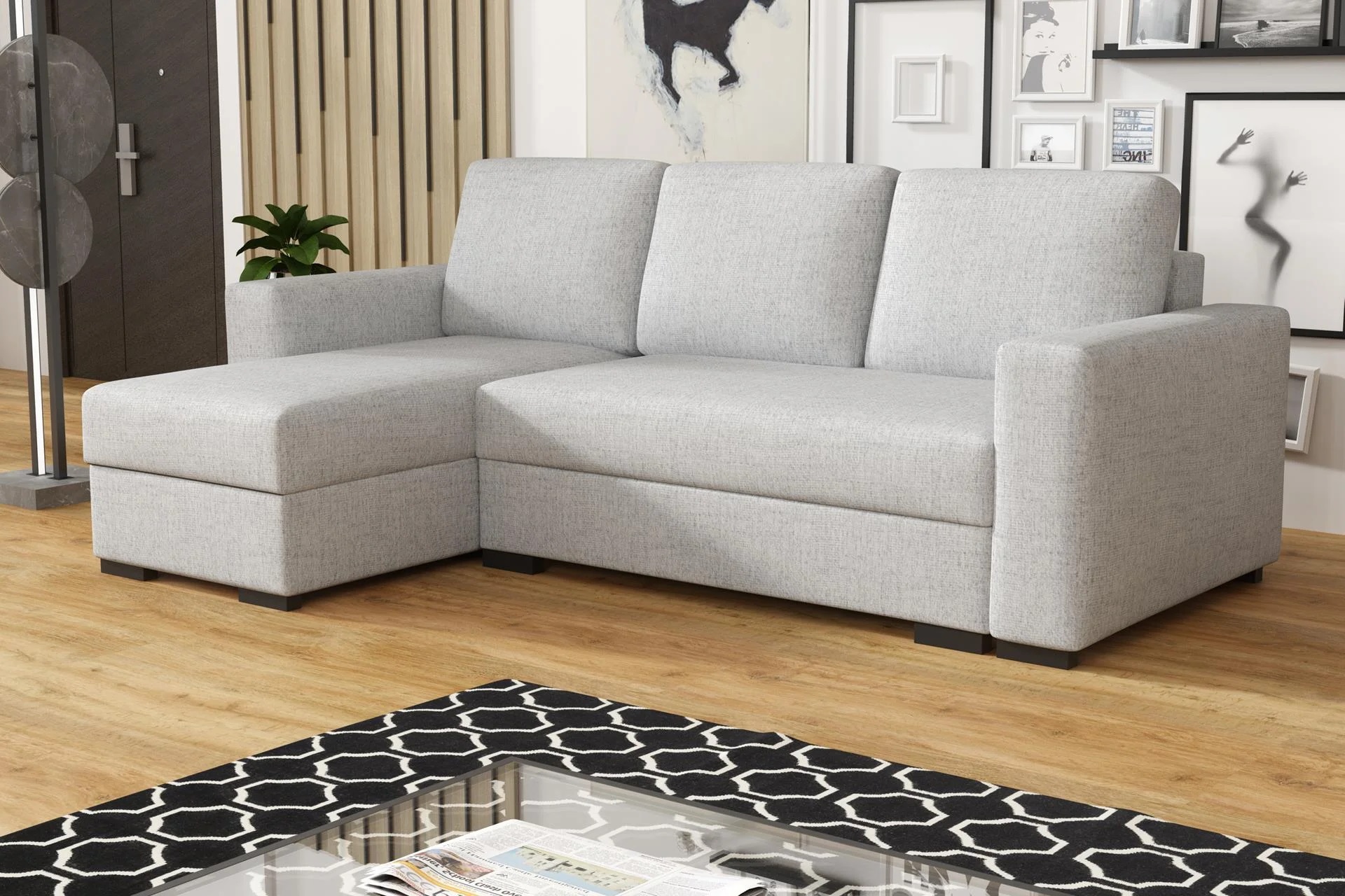 De LORENT-hoekbank wordt geleverd in de modieuze Nave-stof en is verkrijgbaar in alle huidige seizoenskleuren. Kies de kleur die het beste bij jouw interieur past.