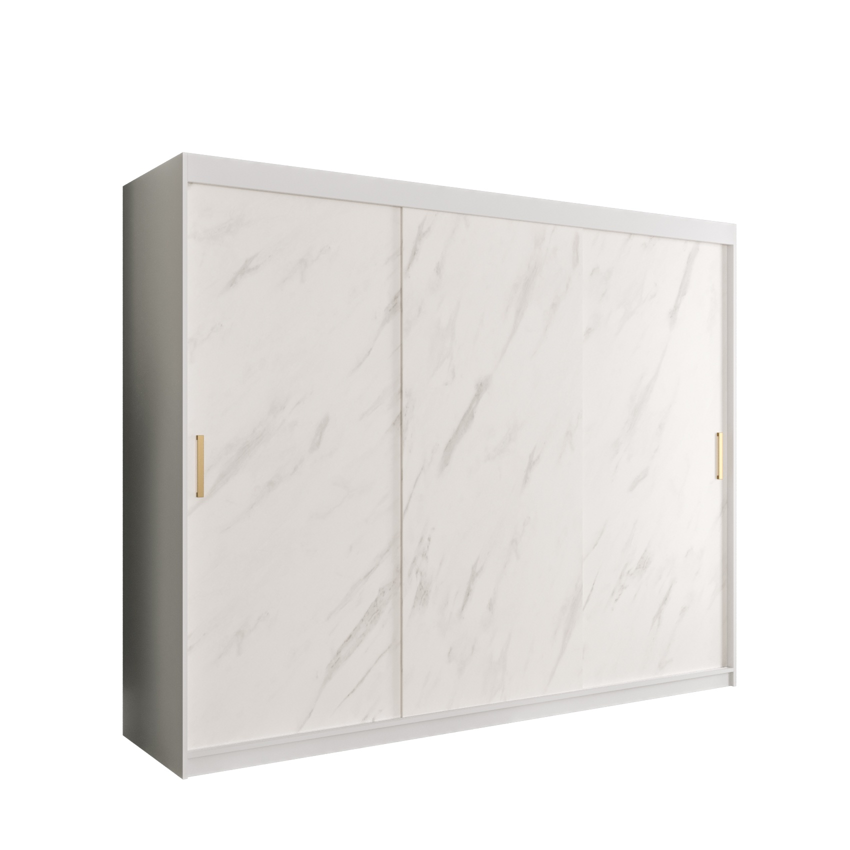 Schuifdeurkast MARMUR T 250 met marmerlook en gouden grepen. Extra ruim, stijlvol en praktisch – ideaal voor slaapkamer, hal of inloopkast.