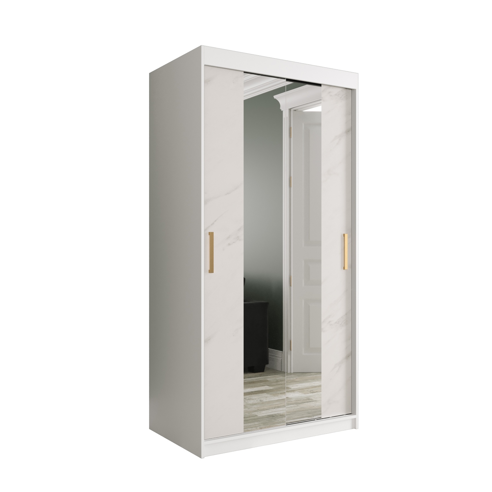 Schuifdeurkast MARMUR T1 100 met marmerlook, spiegel en gouden grepen