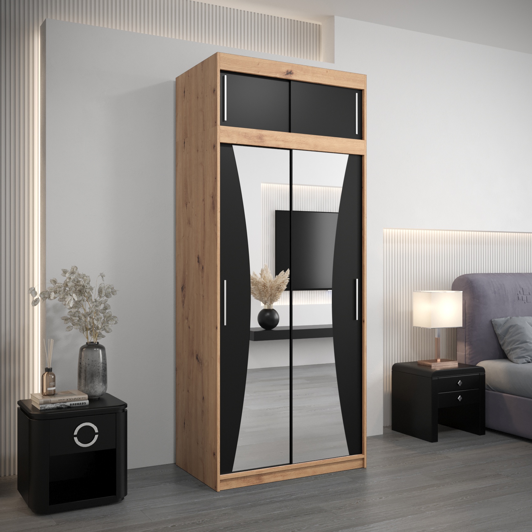 Artisan + spiegel, Eiken Sonoma en spiegel, Mat wit en spiegel zle, Mat zwart en spiegel