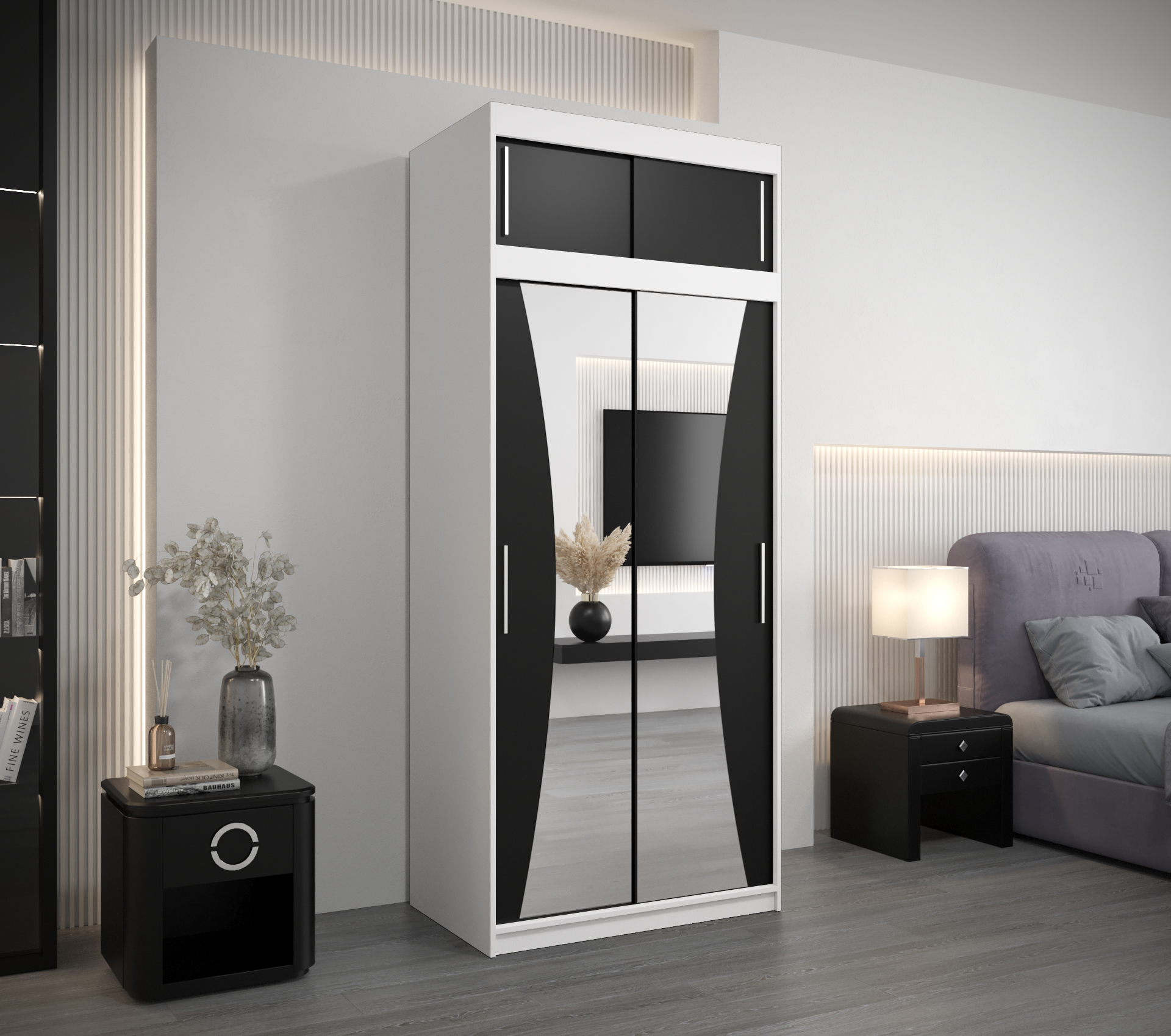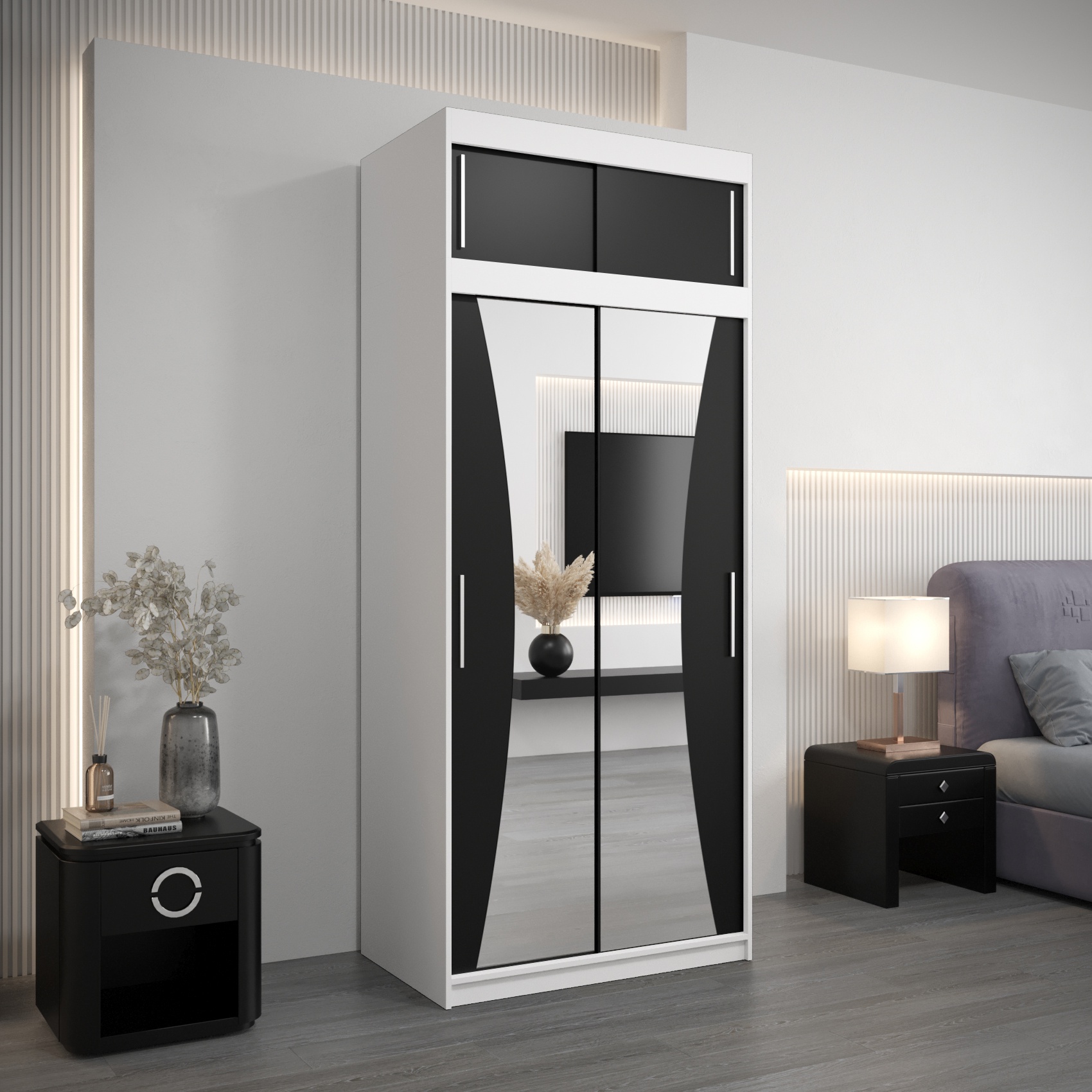 • Bovenkast – met een hoogte van 40 cm, perfect als verlenging van de kast. De breedte en diepte zijn identiek aan die van de kledingkast, waardoor een harmonieus en stijlvol geheel ontstaat.