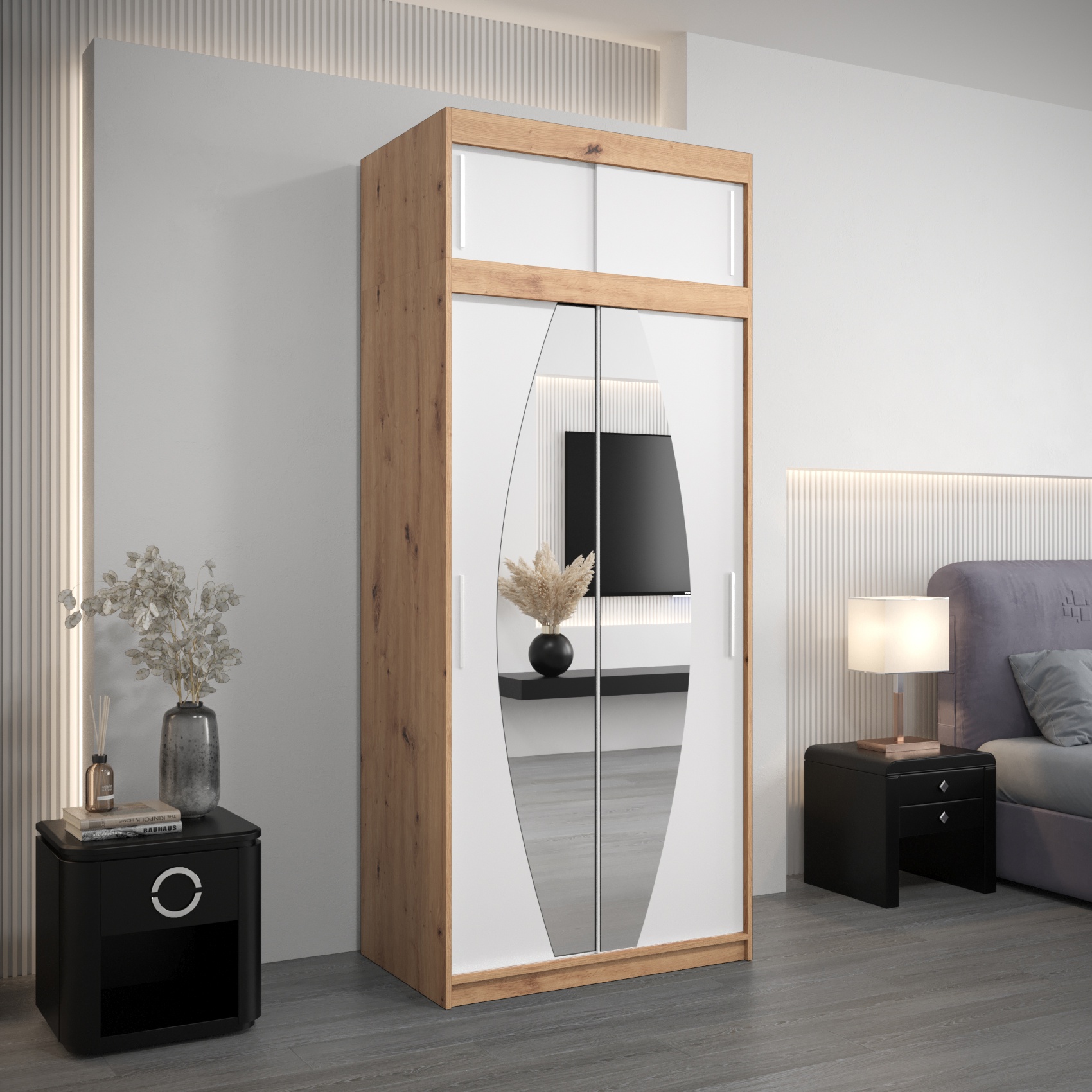 Eiken artisan + spiegel, Eiken sonoma + spiegel, Mat wit + spiegel, Mat zwart + spiegel