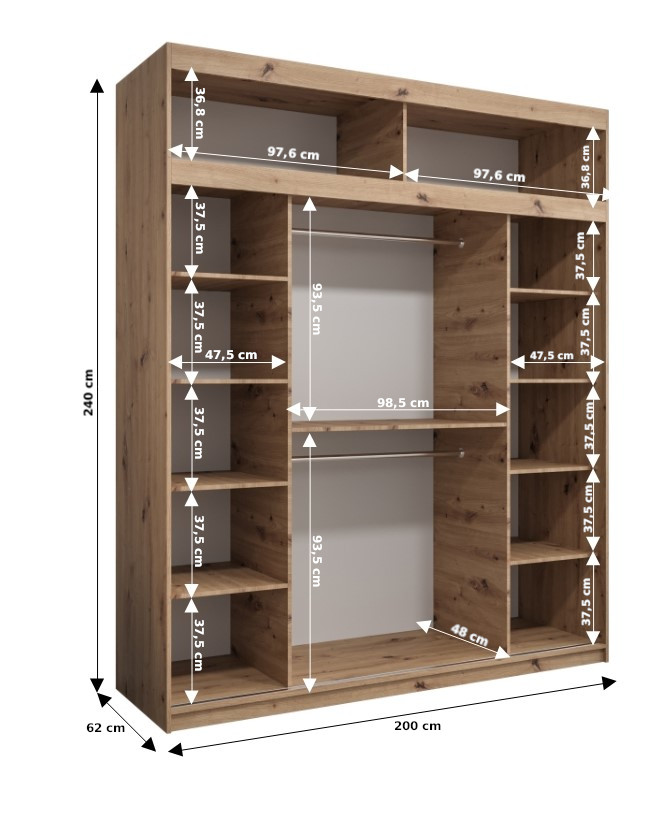 • Bovenkast – met een hoogte van 40 cm, perfect als verlenging van de kast. De breedte en diepte zijn identiek aan die van de kledingkast, waardoor een harmonieus en stijlvol geheel ontstaat.