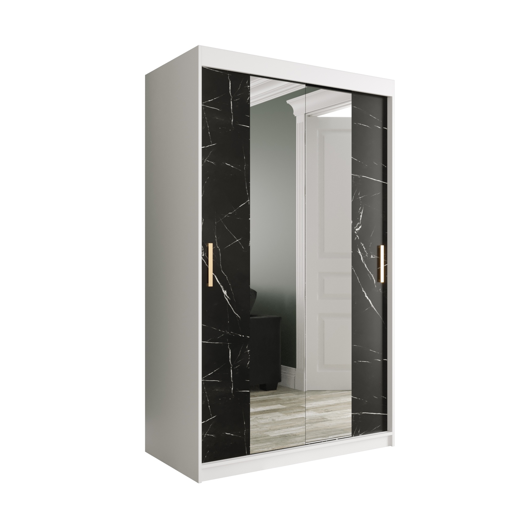 Schuifdeurkast MARMUR T1 120 met marmerlook, spiegel en gouden grepen.