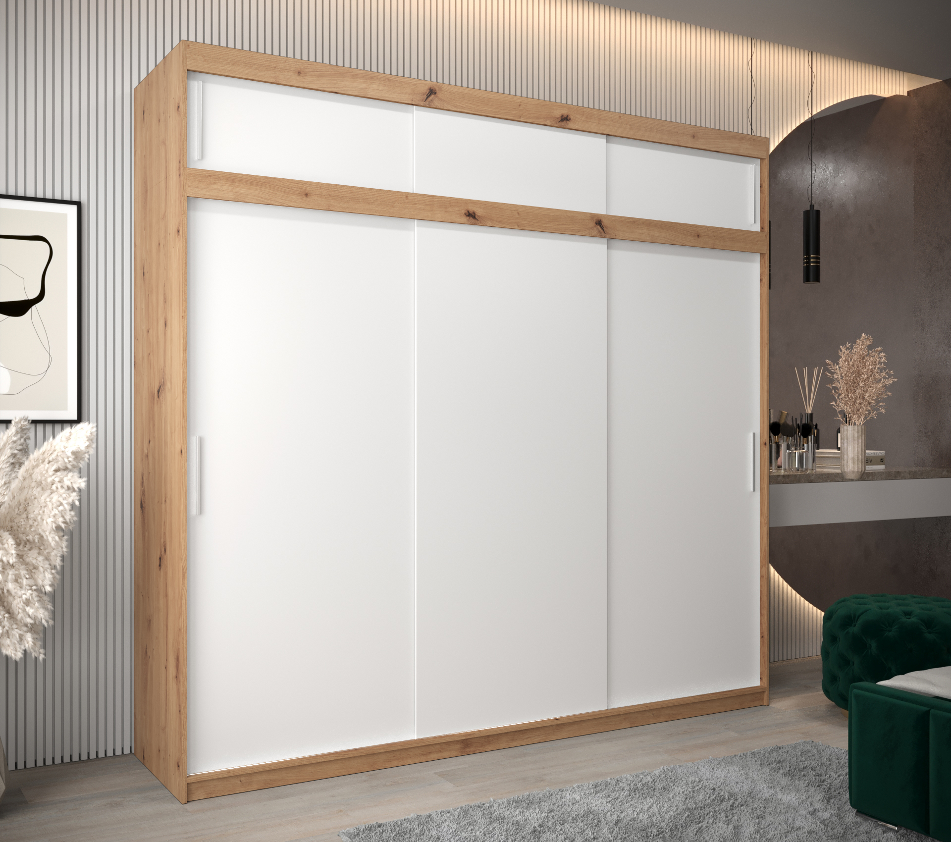 • Bovenkast – met een hoogte van 40 cm, perfect als verlenging van de kast. De breedte en diepte zijn identiek aan die van de kledingkast, waardoor een harmonieus en stijlvol geheel ontstaat.
