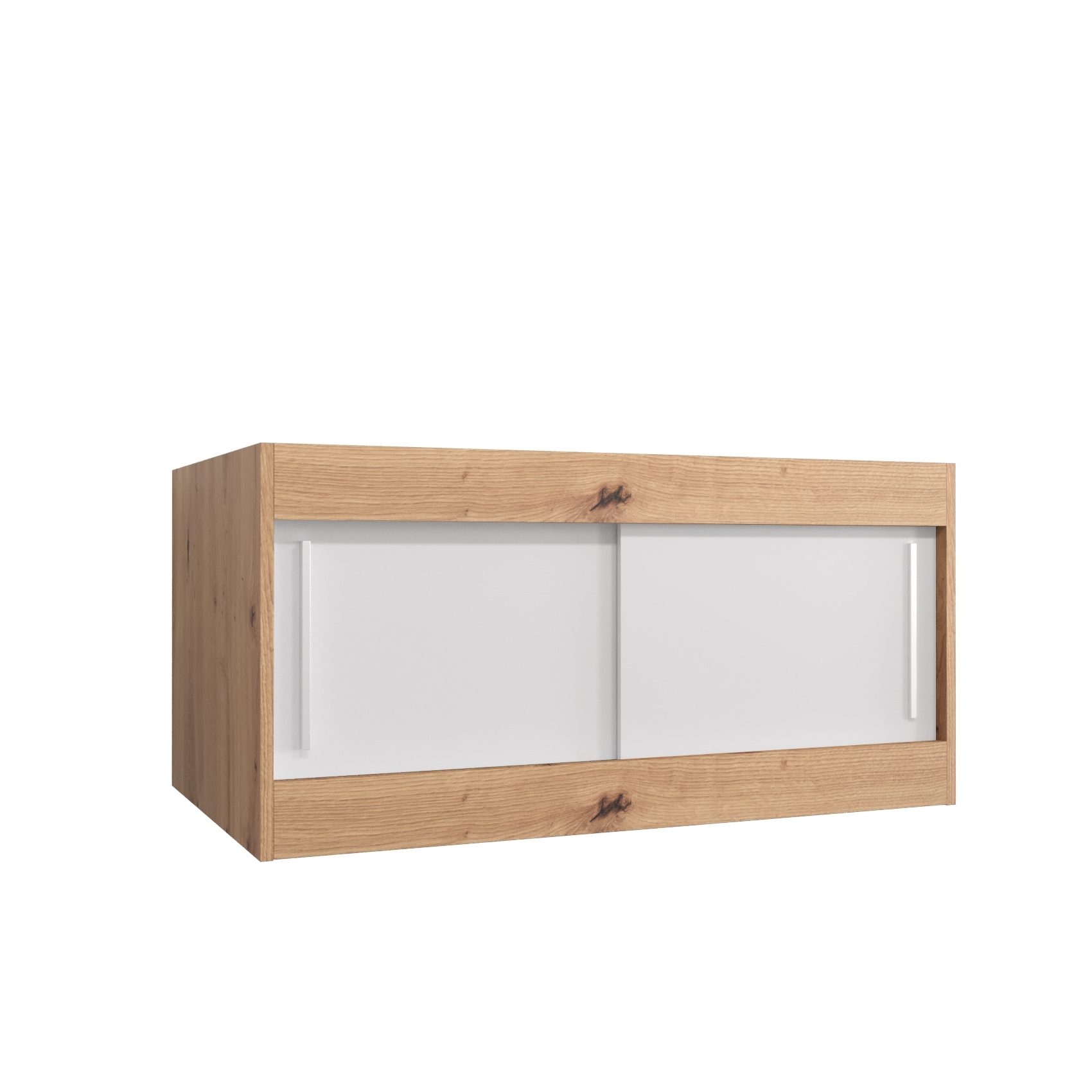 Voorbeeld: kiest u voor een kast in sonoma eiken, dan wordt de bovenkast ook in sonoma eiken uitgevoerd. Bij een kast met wit corpus en fronten in eiken artisan, wordt de bovenkast in dezelfde kleurencombinatie geleverd). Dit is een praktische oplossing waarmee u extra opbergruimte creëert, zonder extra vloeroppervlak in de kamer in te nemen