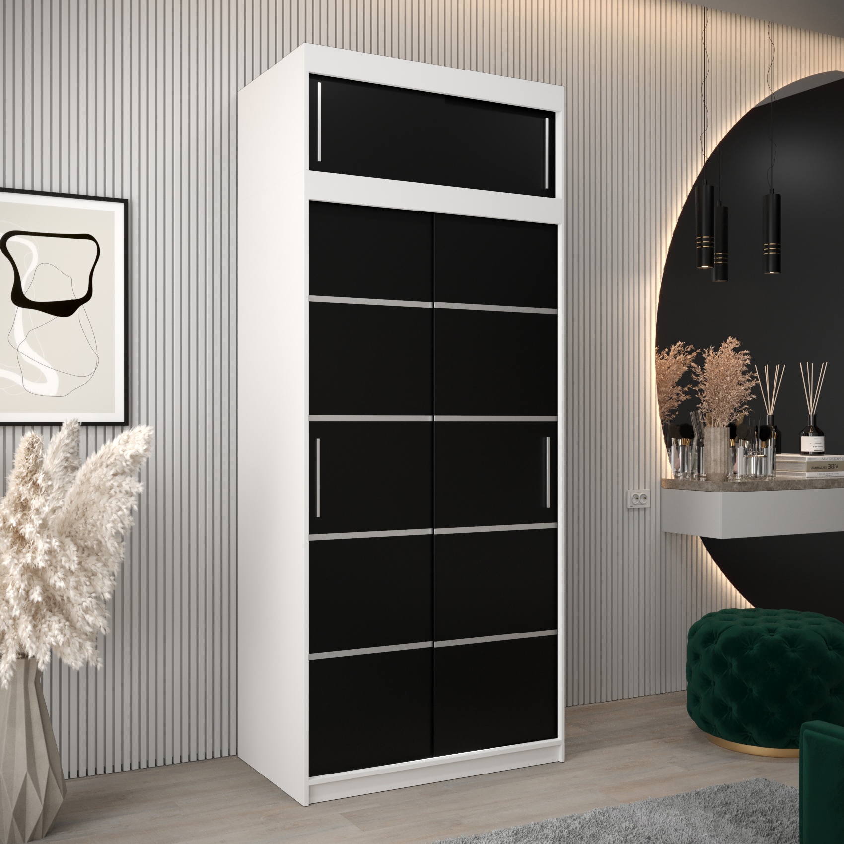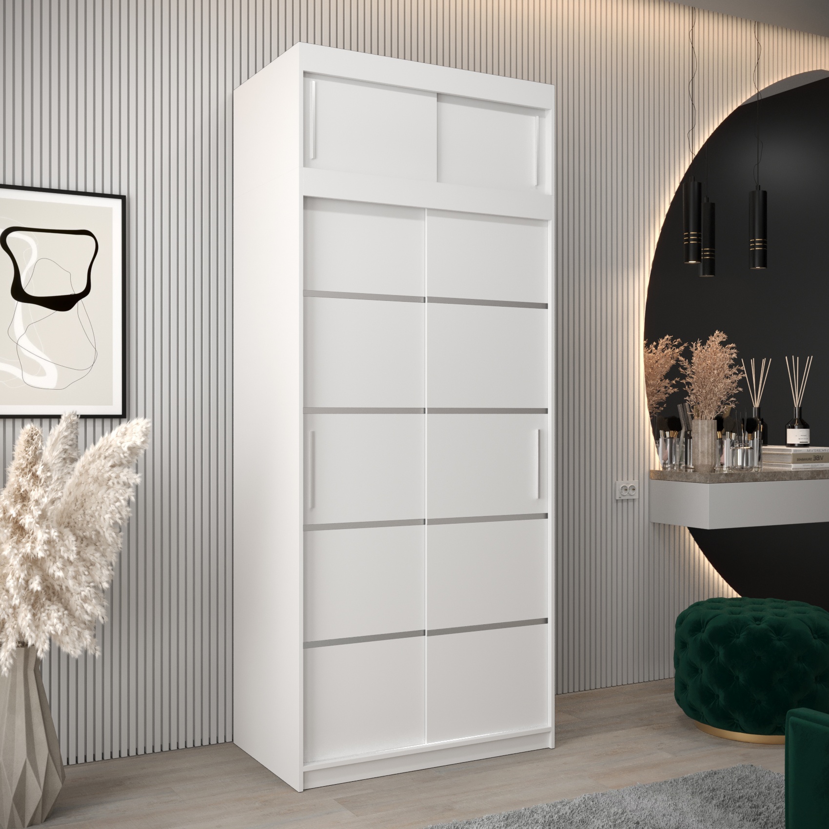 De kast is verkrijgbaar in meerdere elegante kleurafwerkingen, waardoor u een unieke look kunt creëren die past bij uw interieurstijl. De gladde schuifdeuren en zilverkleurige details geven het geheel een verfijnde uitstraling.