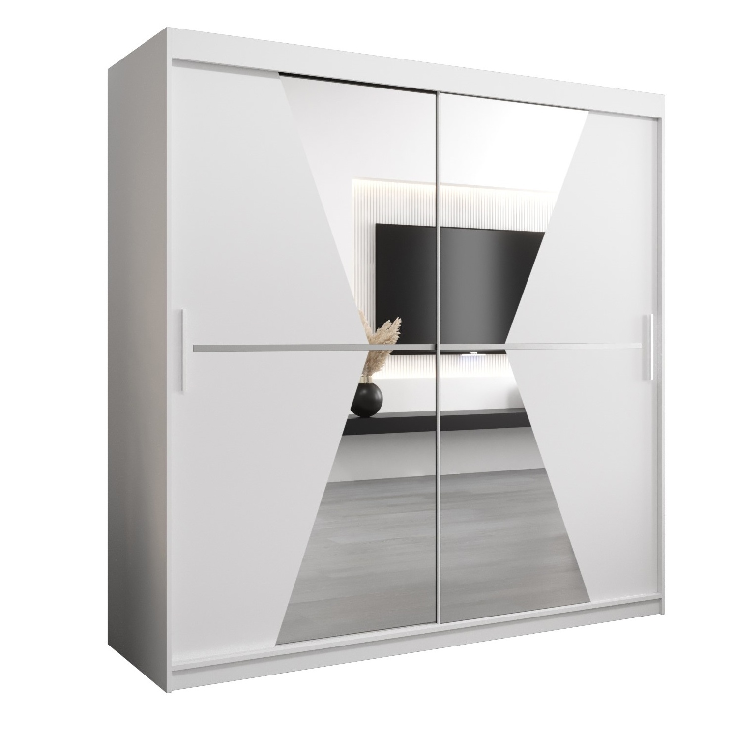 Schuifdeurkast 200 cm met spiegel. Compact, stijlvol en praktisch – verkrijgbaar in meerdere kleurvarianten. Perfect voor slaapkamer of hal.
